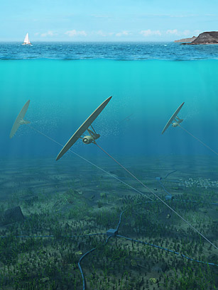 При погружении в подводную бездну в объятия потоков океана произведенный шведской компанией подводный бумажный змей очень похож на детскую игрушку. Но поскольку плотность морской воды в 800 раз больше плотности воздуха, разработчики оснастили подводного змея маленькой турбиной. Именно с ее помощью при погружении на дно океана вырабатывается в 800 раз больше энергии, чем у обычного воздушного змея. Разработчики назвали свой продукт Deep Green и во всю заявляют, что он может вырабатывать примерно до 500 киловатт энергии. Представители компании также заявляют, что дизайн продукта значительно поднимет рыночный спрос. Образец подводного змея будет впервые опробован уже в следующем году недалеко от берегов Северной Ирландии.