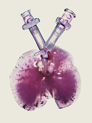 Ученые взяли коллагеновый каркас легкого человека, включающий биологическую матрицу, и заполнили его биогенными веществами и стволовыми клетками с целью получить органы, способные полноценно обеспечивать организм человека кислородом после пересадки. Главная задача изобретательных ученых-медиков: частично заменить ткань серьезно повреждённых лёгких, чтобы помочь пациентам с эмфиземой и раком лёгких.