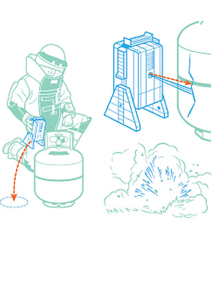 Чудо-устройство для обезвреживания бомб разработали специалисты компании Sandia National Laboratories, штат Нью-Мексико, вместе со Стивом Тоддом, специалистом в области саперных и минно-взрывных работ, инженером-механиком Хуаном Карлосом Якабовски и Чансом Хагсом, отставным сапером военно-морского спецназа ВМС США. В настоящее время компания TEAM уже получила заказ, стоимостью 58 миллионов долларов, на поставку 7.000 этих универсальных устройств.