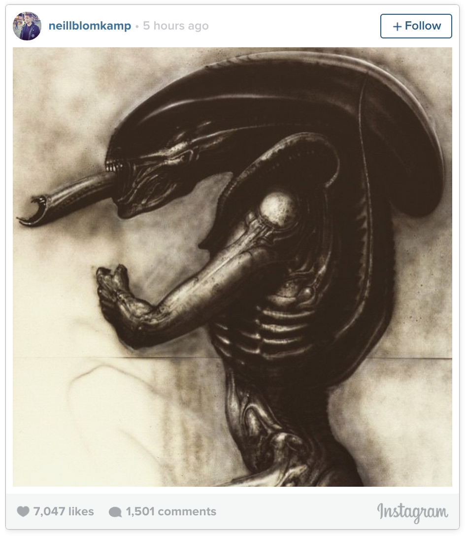 Американский кинорежиссер Нил Бломкамп, человек, который снял такие фильмы, как Elysium, District 9 и выходящий в ближайшее время Chappie, подтвердил, что фильм Alien – это действительно его очередной проект. На фото-сервисе Instagram режиссер опубликовал пару классических работ в оригинальному фильму “Чужой” Ганса Гигера, подписав при этом: “Да… я думаю, что это официально мой очередной фильм.”