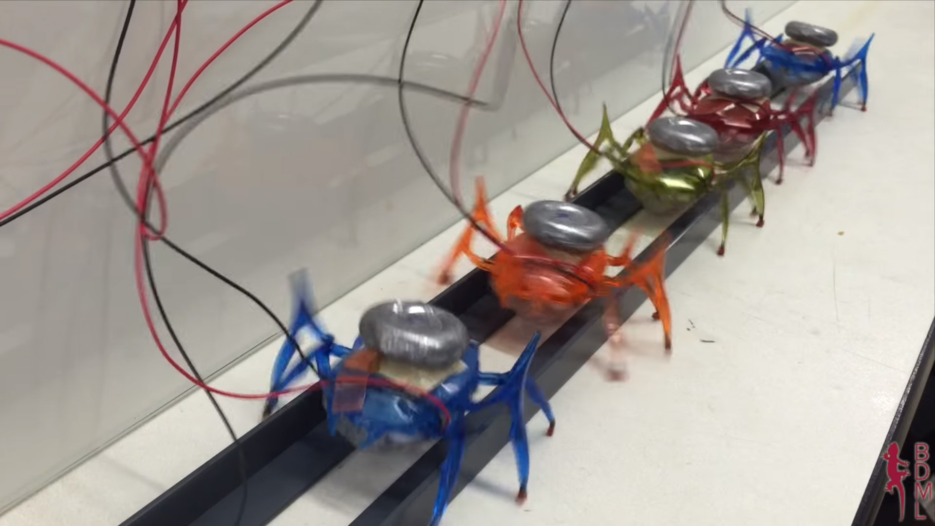 Всем известна способность муравьев без проблем и затруднений перетаскивать объекты, в разы превышающие их собственный вес. Команда ученых Стэндфордского университета активно изучает возможности использования силы трения на примере мелких роботов, сделанных по подобию муравьев. Совместными усилиями при хорошем взаимодействии с поверхностью роботизированные букашки способны перемещать груз в тысячи раз больше чем их собственный вес.
